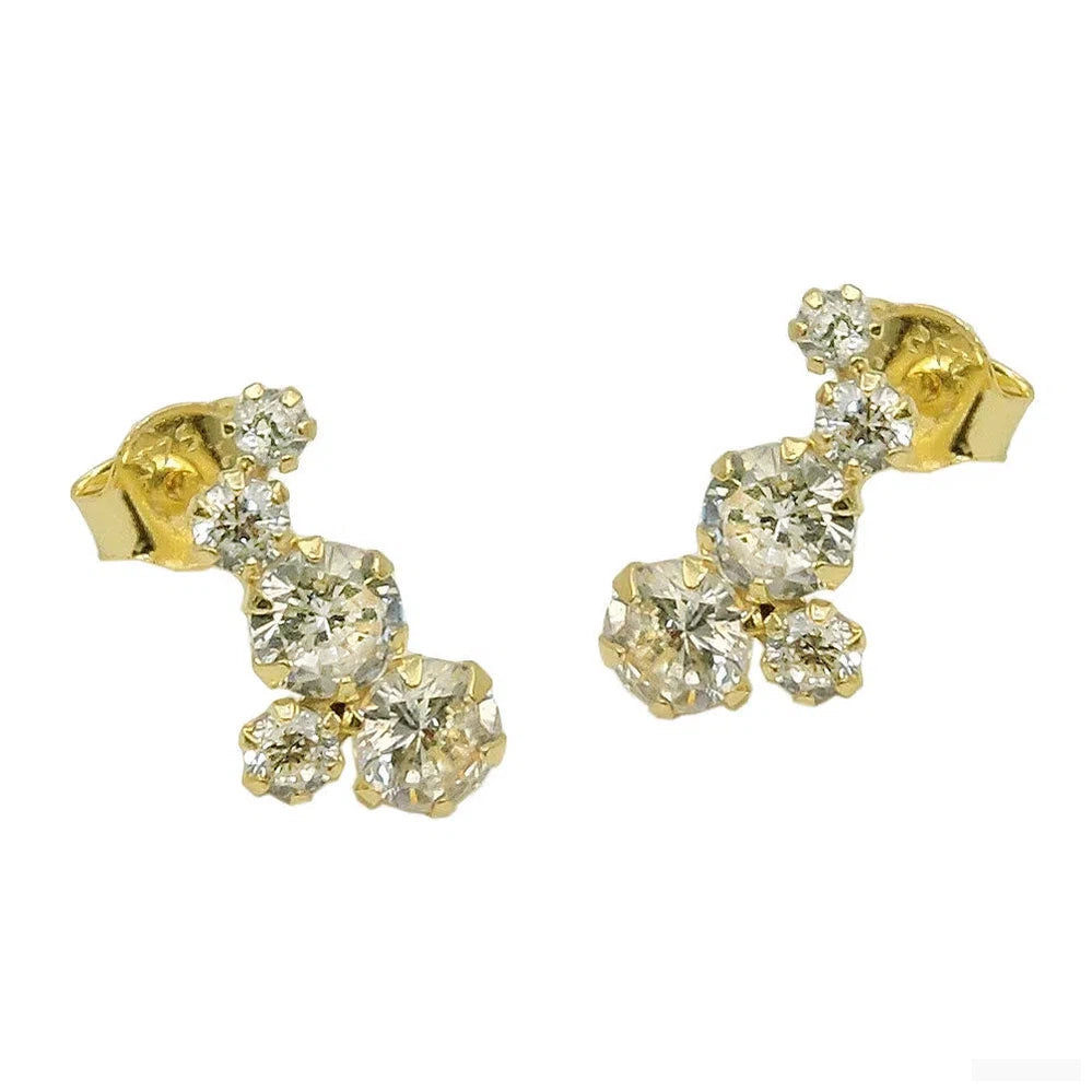Die fünf strahlenden Zirkonias sind in einer glänzenden Krappenfassung angeordnet und verleihen den Ohrringen einen einzigartigen Glanz. Die unterschiedlichen Größen der Zirkonias, die in einer eleganten Bogenform angeordnet sind, sorgen dafür, dass diese Schmuckstücke im Licht funkeln und die Blicke auf sich ziehen.