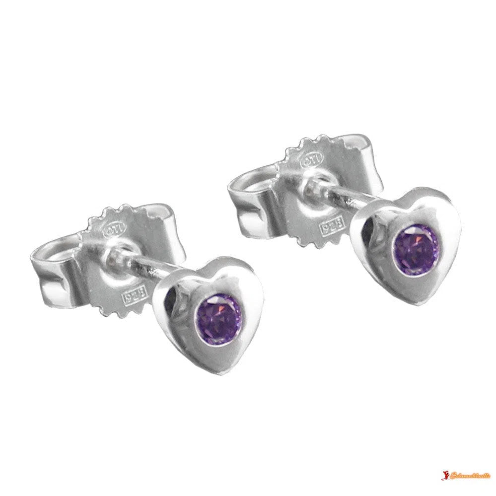 Herz ist Trumpf! Klitzekleiner 4mm Ohrstecker Herz in Sterling Silber 925 mit rundem, farbigem Zirkonia in lila/amethystfarben in der Mitte, gearbeitet in hochwertiger Juwelierqualität. Das Herz gilt weltweit als Symbol für die Liebe. Ein wunderschönes Schmuckstück für kleine Mädchen, die die Farbe Lila lieben. Nicht nur als Kinderschmuck geeignet.