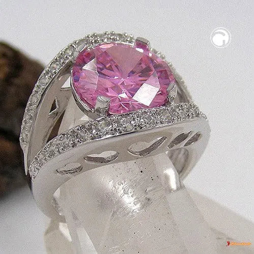 Ring, großer Zirkonia rosé, Silber 925
