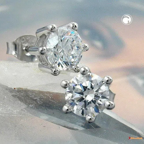 hochwertiger Stecker in bester Juwelierqualität mit 7mm Zirkonia, fest gefasst, wie auf eine Krone gesetzt, Oberfläche anlaufgeschützt rhodiniert