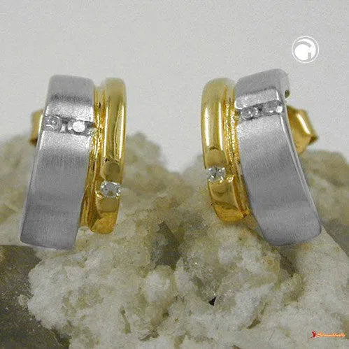 Ohrstecker-Halbcreole mit 2 Kristall-Steinen (Glas), matt-rhodiniert, gold-plated vergoldet
