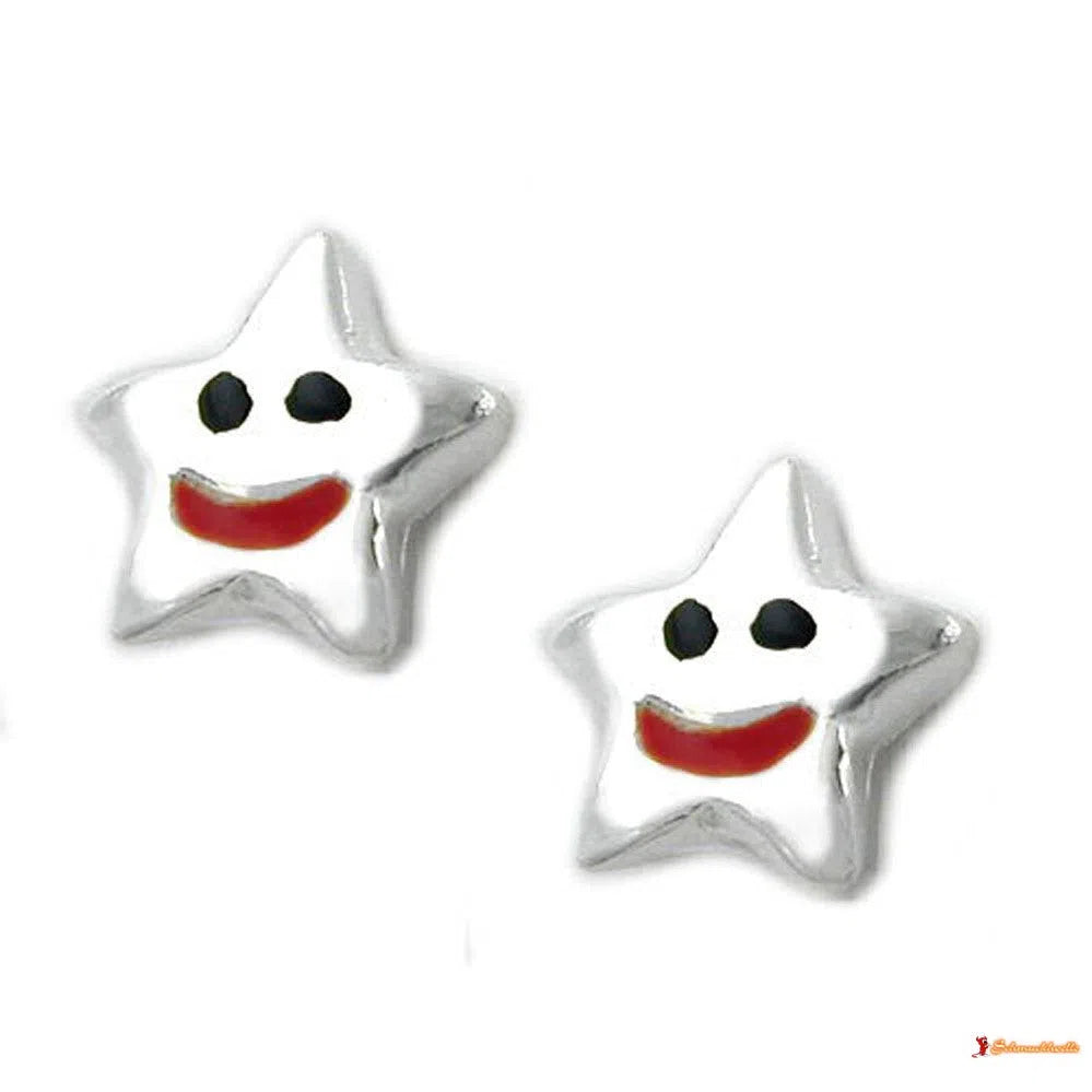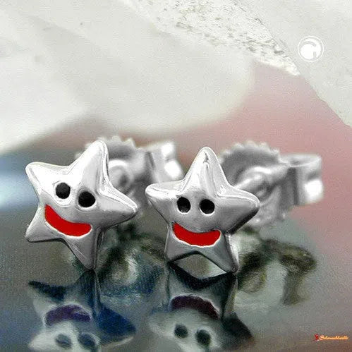 Dieser lustige kleine Ohrstecker zaubert ein Lächeln in Ihr Gesicht! Stecker Stern mit lachendem Gesicht, Augen schwarz und Mund rot lackiert und emailliert