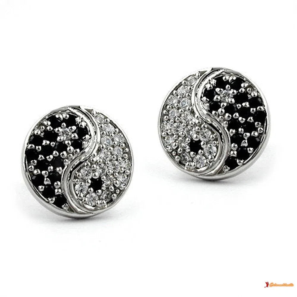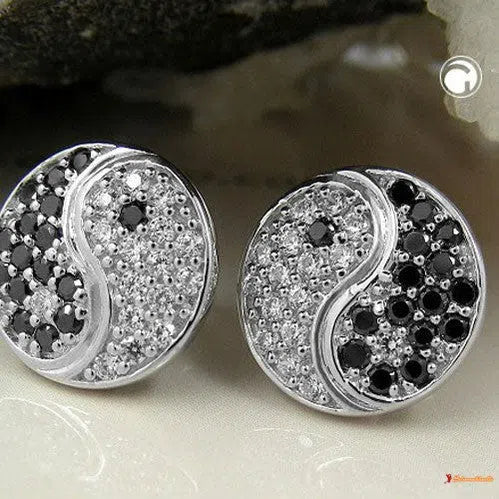 Dieser Ohrstecker ist ein wunderschöner Blickfang ! Das Motiv Yin-Yang ist komplett mit schwarzen und weißen Zirkonias besetzt, Oberfläche anlaufgeschützt rhodiniert, sehr hochwertig, Das Yin-Yang Zeichen ist Ausdruck innerer Ausgeglichenheit.